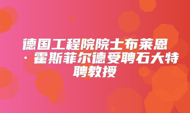 10月17日,学校聘任德国工程院院士布莱恩·霍斯菲尔德(Brian Horsfield)为特聘教授。校长郝芳院士与布莱恩·霍斯菲尔德院士座谈,并为其颁发特聘教授聘书。郝芳高度评价布莱恩·霍斯...