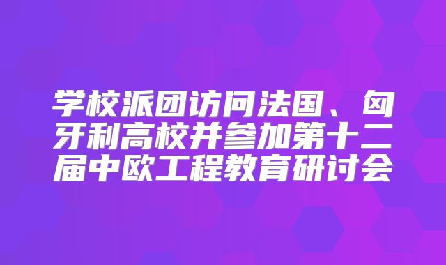 10月21日至26日,副校长戴彩丽率团出访法国、匈牙利,代表学校参加第十二届中欧工程教育研讨会,并先后访问法国格勒诺布尔国立理工学院(Grenoble INP-UGA)、匈牙利罗兰大学(Eö...