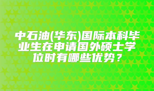 中石油(华东)国际本科毕业生在申请国外硕士学位时具有以下优势:国际化的教育背景和实践经验:中石油(华东)的国际本科项目注重培养学生的国际视野和跨文化交流能力。学生在国内阶段的学习中,通...